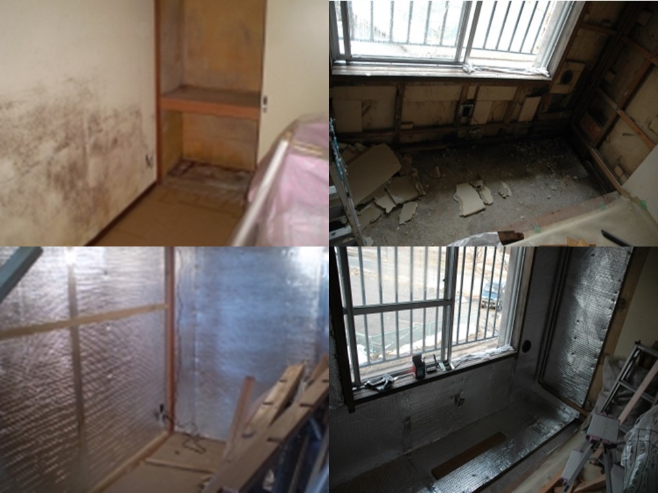 結露によるカビが発生していた既築の県営住宅を遮熱施工することで、結露及びカビの発生を抑えることができました。